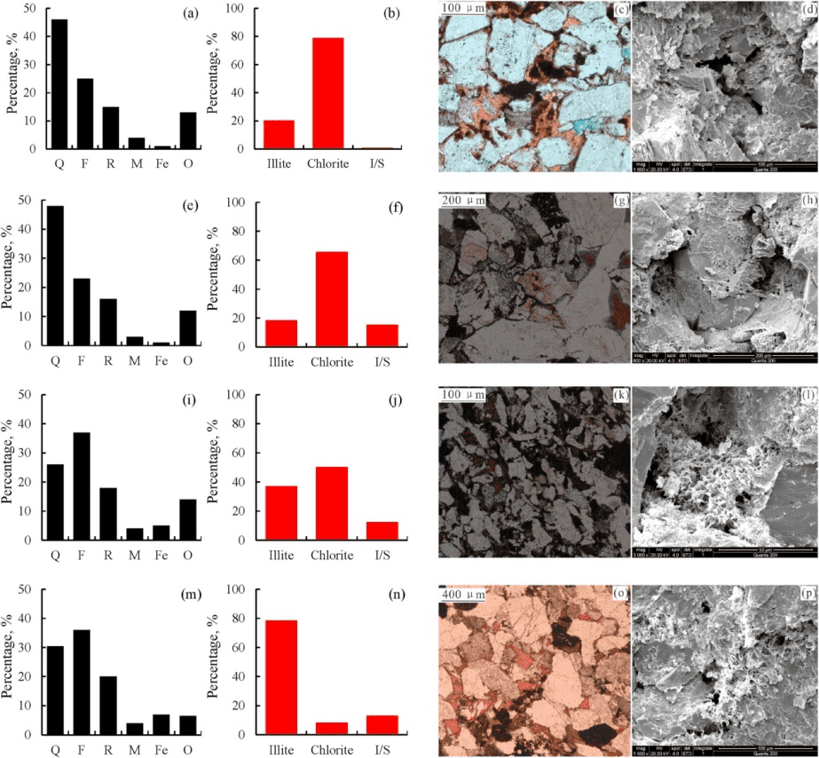 礦物成分和孔隙結(jié)構(gòu)是致密砂巖評(píng)價(jià)中的兩個(gè)重要參數(shù),礦物組成指的是不同礦物(無(wú)機(jī)和有機(jī))的比例,而孔隙結(jié)構(gòu)指的是空間的大小、形狀和連通性。常見(jiàn)的水力壓裂技術(shù),可以有效地改善儲(chǔ)層中的采油效率,然而,由于礦物成分和孔隙結(jié)構(gòu)相互影響導(dǎo)致許多機(jī)理相互混淆,使得對(duì)單一參數(shù)進(jìn)行定量研究具有挑戰(zhàn)性,因此,闡明礦物成分、孔隙結(jié)構(gòu)和自滲吸效率之間的關(guān)系至關(guān)重要。