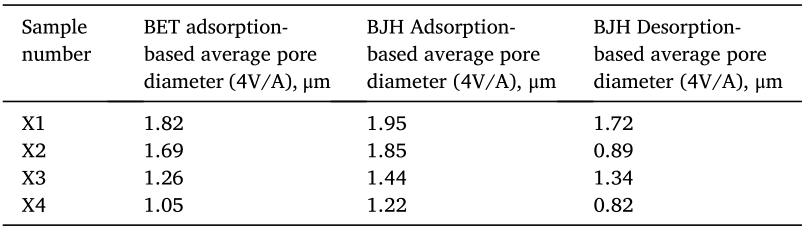 表2:基于BET、BJH的吸附解析模型得到的平均孔隙直徑