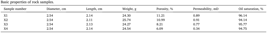 四塊樣品均在120?C的烤箱中干燥72小時(shí),然后浸入煤油并在20兆帕的壓力下飽和12小時(shí),取出、擦干、稱(chēng)重。然后,將樣品浸泡在40%的氯化鉀溶液中消除水的信號(hào)。在一定時(shí)間內(nèi)反復(fù)取出測(cè)試T2譜,分別得到了0小時(shí)、4小時(shí)、8小時(shí)、18小時(shí)、48小時(shí)和72小時(shí)的T2曲線。低場(chǎng)核磁共振設(shè)備由蘇州紐邁分析儀器股份有限公司提供,測(cè)試參數(shù):回波間隔0.2ms,等待時(shí)間6s,累加次數(shù)64。