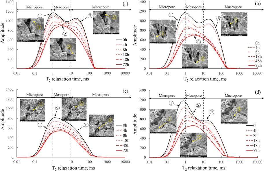圖5:四個(gè)樣品在不同時(shí)間的T2曲線和SEM圖像。