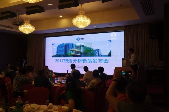 紐邁研發經理楊翼在晚宴現場做紐邁新產品的發布,紐邁2017年正式推出新品——核磁共振顆粒表面特性分析儀,用于工業、科研中如電子、醫藥、材料等多個領域。