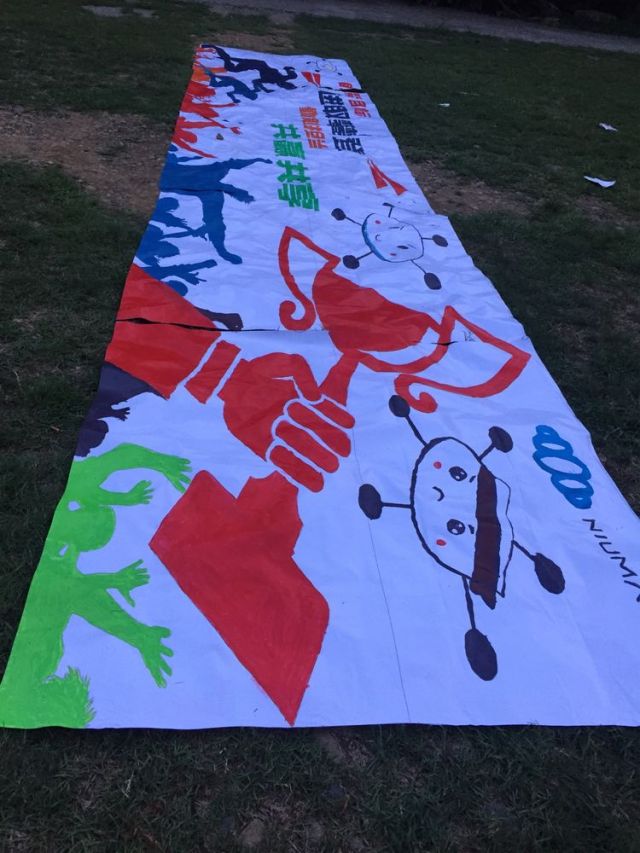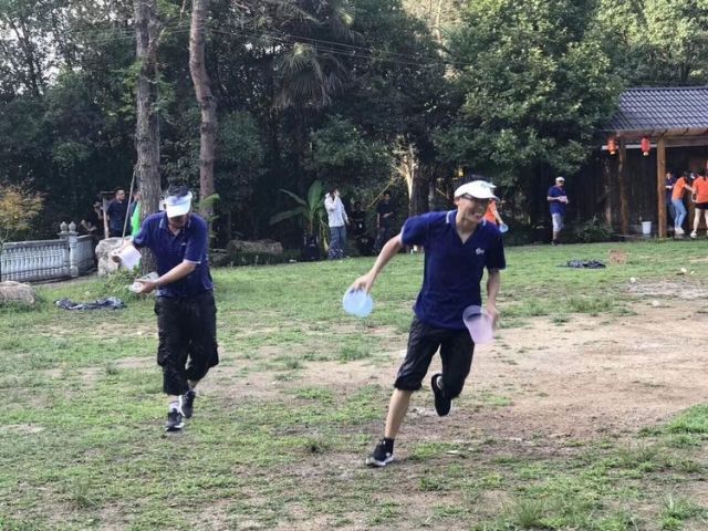午餐和簡單休整之后,下午,團建拉開戰(zhàn)幕,分成10支隊伍,男女搭配,威武登場,隊旗、口號、戰(zhàn)歌,一樣都不能少;隊長、隊蜜、保安,一個都不能缺。兩兩對陣,抑或團隊配合,聽指揮,尋幫助,合作第一,共贏至上。