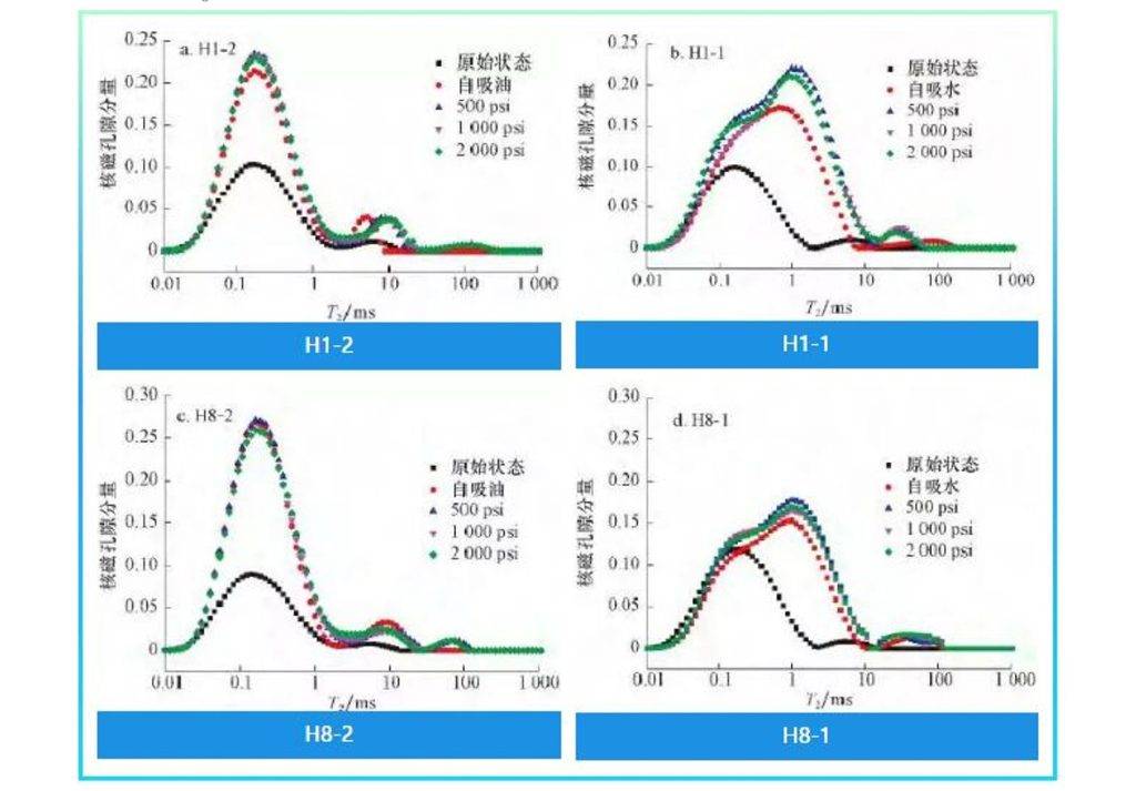 低場(chǎng)核磁是確定孔隙度和孔隙尺寸的有利工具。那么基于頁(yè)巖中有機(jī)孔和無(wú)機(jī)孔潤(rùn)濕性的差異,分別在飽和水和油條件下觀測(cè)氫核信號(hào),從而建立弛豫時(shí)間與孔徑的定量關(guān)系,這就為利用核磁共振技術(shù)確定有機(jī)孔和無(wú)機(jī)孔提供了可能。