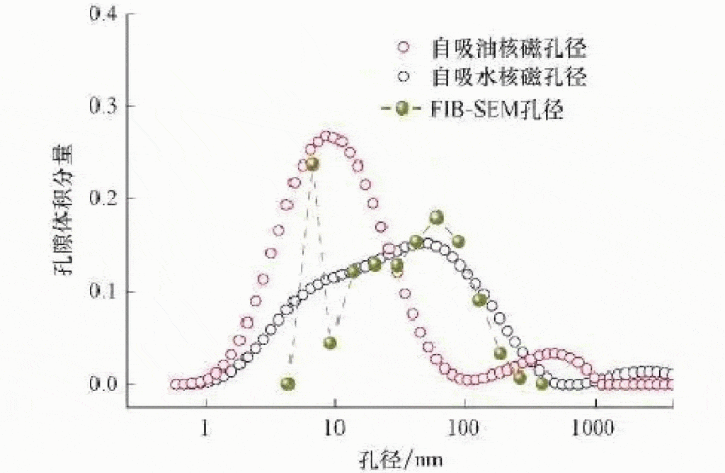 2.采用核磁共振確定龍馬溪組頁(yè)巖孔隙與FIB-SEM掃描圖像結(jié)果基本吻合。利用核磁法確定頁(yè)巖孔徑分布具有兩大優(yōu)勢(shì):一是不破壞巖心可多次重復(fù)測(cè)量;二是可進(jìn)行全直徑巖心測(cè)量,能從宏觀尺度反映真實(shí)地下地層情況。