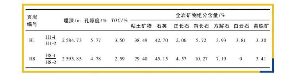 實(shí)驗(yàn)樣品采自涪陵地區(qū)志流系龍馬溪組頁(yè)巖,樣品物性、TOC含量及礦物含量見下表。