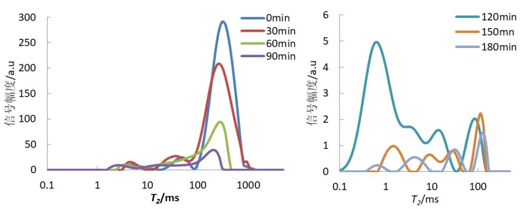 胡蘿卜樣品干燥不同時間的T2弛豫圖譜如下所示: