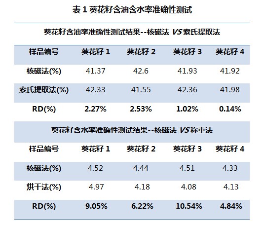 作為一項無損檢測技術,基于弛豫時間檢測的低場核磁共振在油料種子含油含水率檢測領域,有完善的研究體系和成熟的成果,在農業食品業界含油率檢測占有一席之地。目前已有國際標準ISO10565: 1995《油籽——油含量水含量同時測定——脈沖式核磁共振測定法》和國家標準GB/T 15690:1995《油籽含油量核磁共振測定法》。適用于含水量10%以下的油籽,如油菜籽,大豆,亞麻籽,葵花籽,芝麻,棉籽等。含水量高于10%的檢測對象,需要在含油率測試前作烘干處理,使之含水率降到要求范圍。