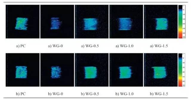 圖5 碳化作用前后各樣品的核磁共振偽彩圖像