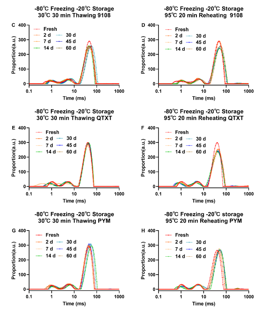 3、對比核心:米飯在長期凍藏過程中,其水分狀態(尤其是自由水含量、水分分布均勻性)差異。