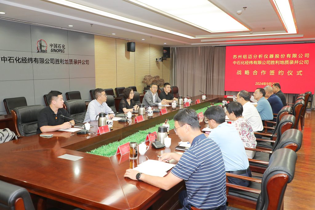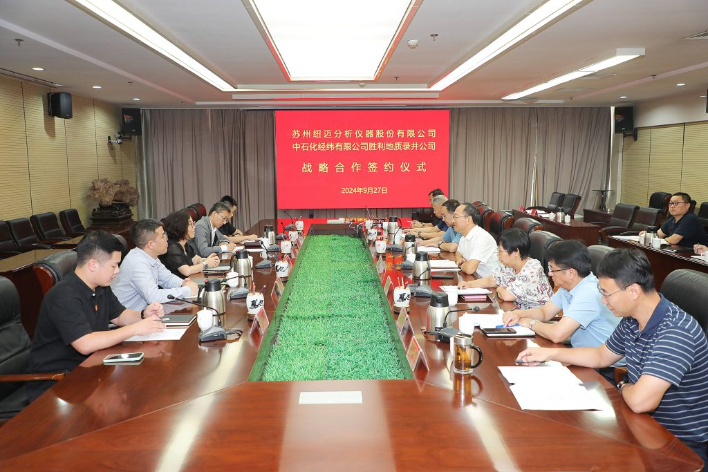 9月27日下午,紐邁分析與中石化經緯有限公司勝利地質錄井公司(簡稱勝利地質錄井)正式簽署了戰略合作協議。勝利地質錄井經理趙建勇、紐邁分析總經理李向紅共同出席并見證了這一重要時刻。勝利地質錄井的高級專家兼副經理張多文與紐邁分析的副總經理張英力分別代表各自公司簽署了協議,標志著雙方正式建立了戰略合作伙伴關系。