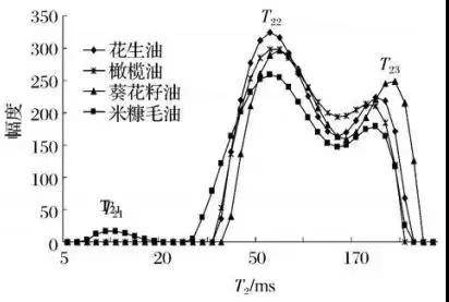 圖1:花生油、橄欖油、葵花籽油和米糠毛油的弛豫圖譜