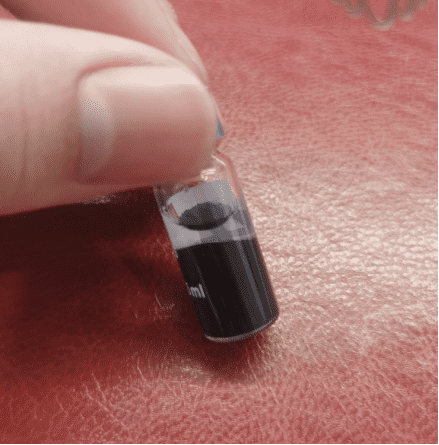 1、取色譜瓶,用吸管吸取水,滴入大概1ml的水,去皮稱重。