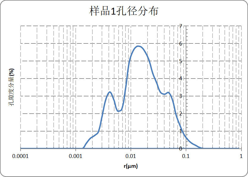 根據軟件模型的處理,低場核磁法將該樣品的孔徑分布結果完整的展現出來,根據結果可知,該樣品的孔隙度為48.93%,孔徑分布主要的分布峰頂點為13nm孔隙度分量為5.83%。(上表標紅出)
