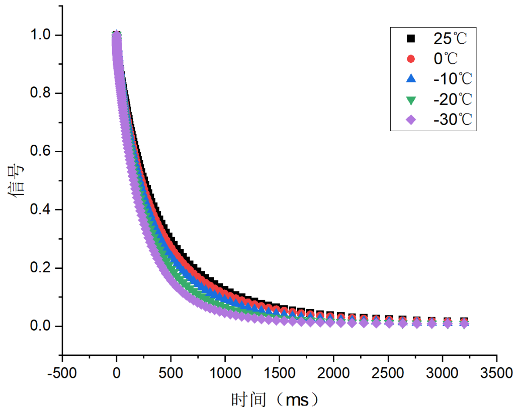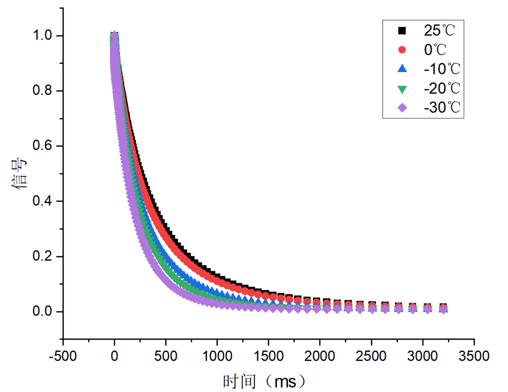 目前只能用一些常規的力學方法來表征水凝膠抗凍能力,該方法操作較為繁瑣且對材料具有破壞性,使用蘇州紐邁分析儀器股份有限公司生產的低場核磁變溫分析儀VTMR20-010V-I可以對水凝膠的抗凍性能做出很好的表征,該方法通過測試水凝膠中不同水的狀態去表征水凝膠的抗凍能力,該測試方法原位無損,且方便快捷。