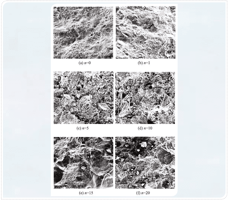 圖5 不同干濕循環下泥質砂巖試件SEM圖片