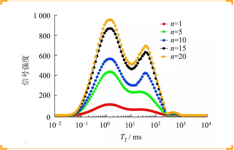 圖2泥質砂巖在不同干濕循環次數下的核磁T2譜圖