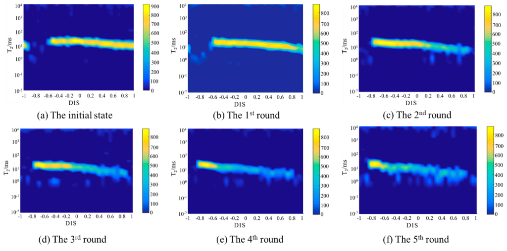 (2)二維T1-T2譜在CO2驅替過程油相運移監測中展現出工程應用潛力,但其現有二維序列測量耗時過長的缺陷制約了現場快速響應能力,亟需通過脈沖序列優化與硬件升級實現實時動態監測突破。