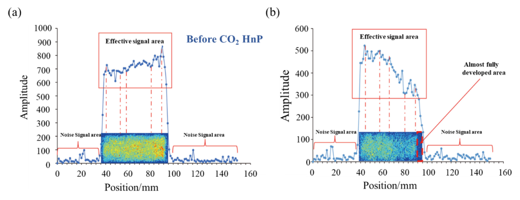 (7)分層T2技術通過空間分辨T2分布解析,可重構驅替方向含油飽和度剖面,并基于CO2前緣擴展特征評估波及效率。