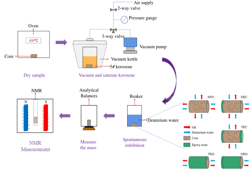 圖2核磁共振自發滲吸實驗過程示意圖(Wang et al. 2022)