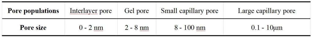表1.硬化水泥漿體內(nèi)部孔隙分類及孔徑