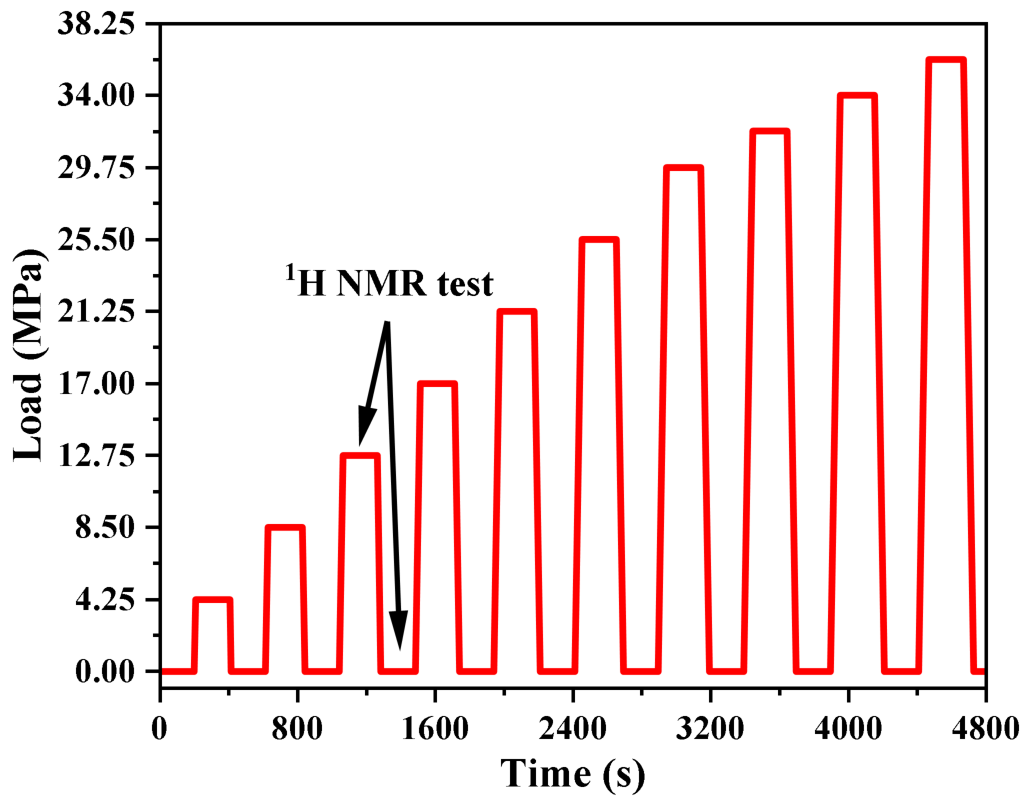 (4)按照?qǐng)D2所示的加載方式對(duì)HCP進(jìn)行加載,達(dá)到指定的荷載值時(shí)保持恒壓,隨后進(jìn)行1H NMR測(cè)試,一次1H NMR測(cè)試約200 s。測(cè)試完成后立即卸壓,保持卸壓狀態(tài)對(duì)HCP進(jìn)行1H NMR測(cè)試。
