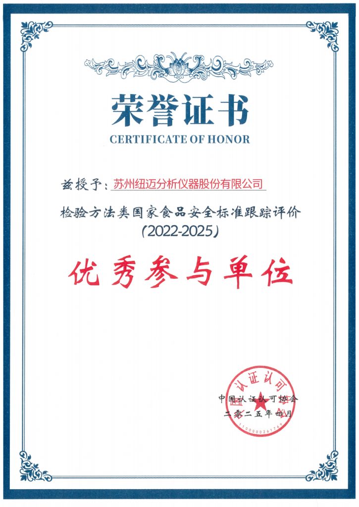 此次榮獲“優秀參與單位”稱號,對紐邁分析而言是榮譽更是責任。未來,紐邁將持續加大技術研發與應用推廣投入,不斷提升產品與服務質量,為保障國家食品安全、推動行業發展貢獻更多力量。